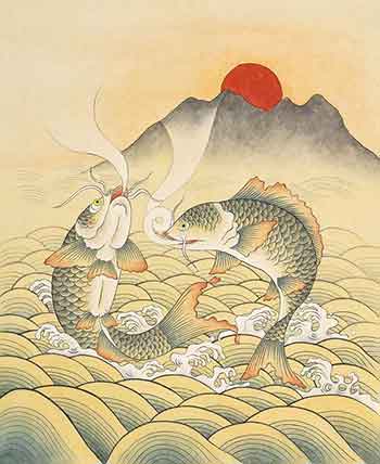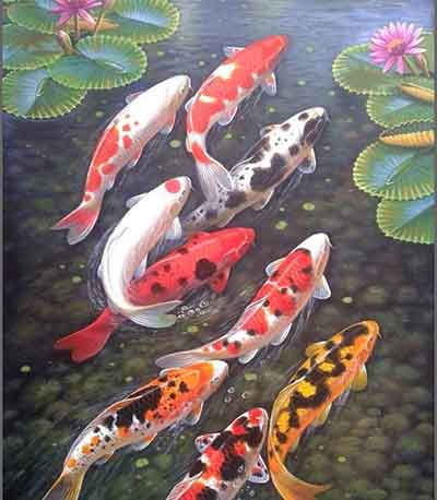 건강하게 헤엄치는 잉어는 성장, 출세를 의미합니다. 태몽이라면, 장차 큰 인물이 될 남자아이를 가지는 되는 꿈입니다.